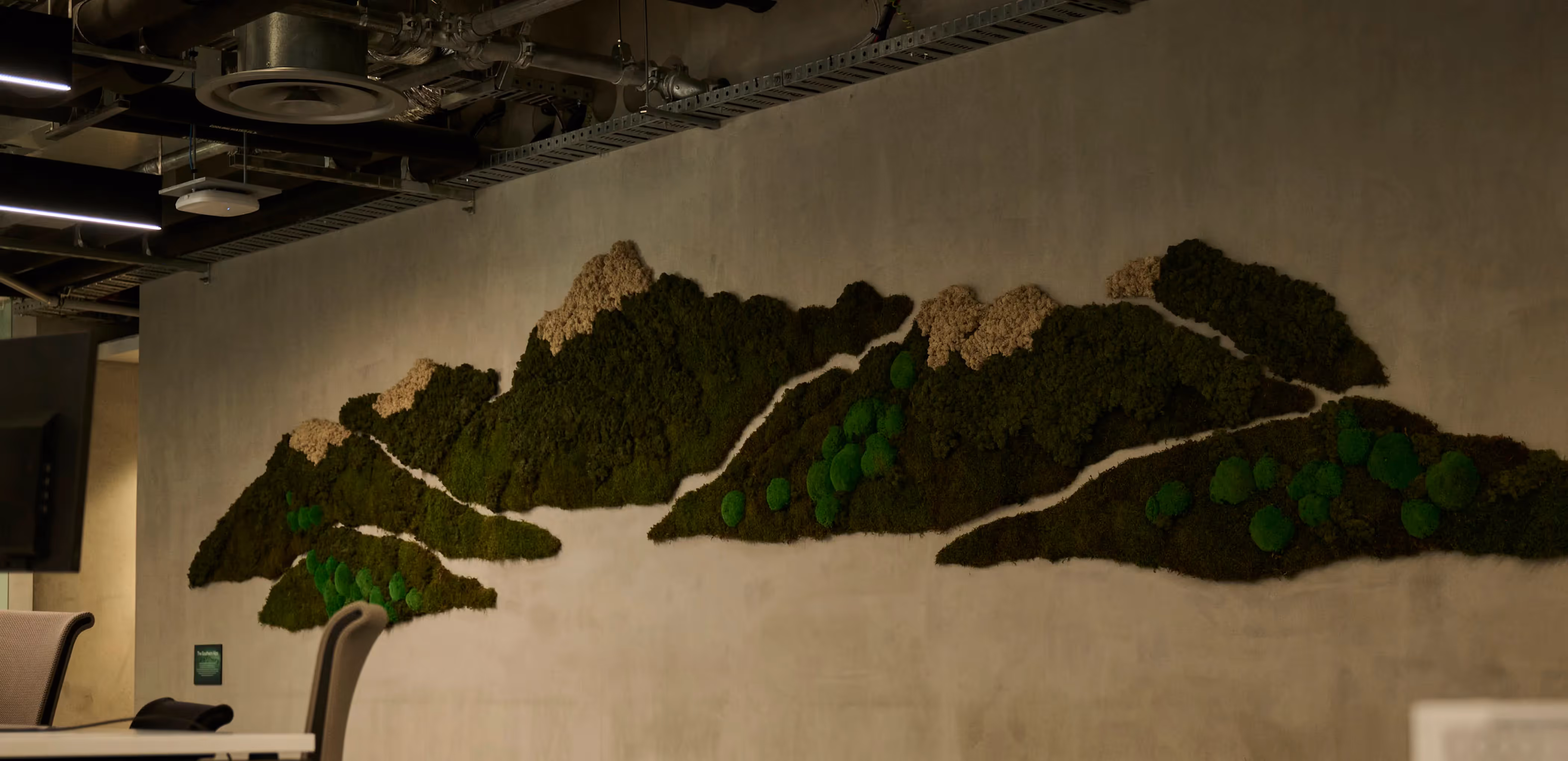 Greenery for One NZ included a bespoke moss wall, inspired by the Southern Alps mountain range.