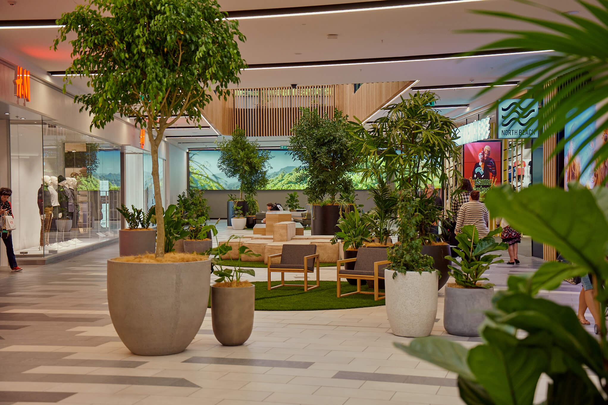 Thoughtfully integrated planting and biophilic design help transform large-format interiors into places that feel more human, warm and approachable. Green walls softening expansive atriums, planters framing seating areas, and natural materials guiding customers through the store all work to reduce sensory overload and encourage longer dwell times, calm and meaningful engagement.